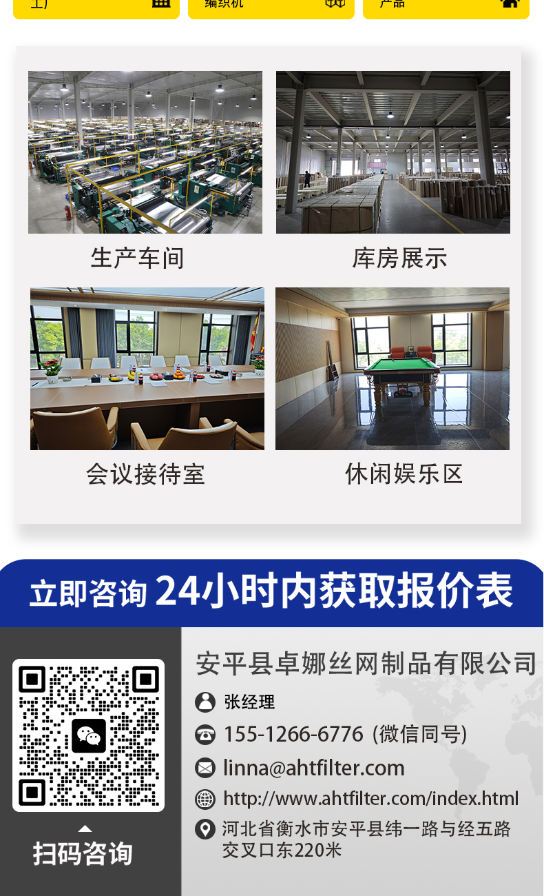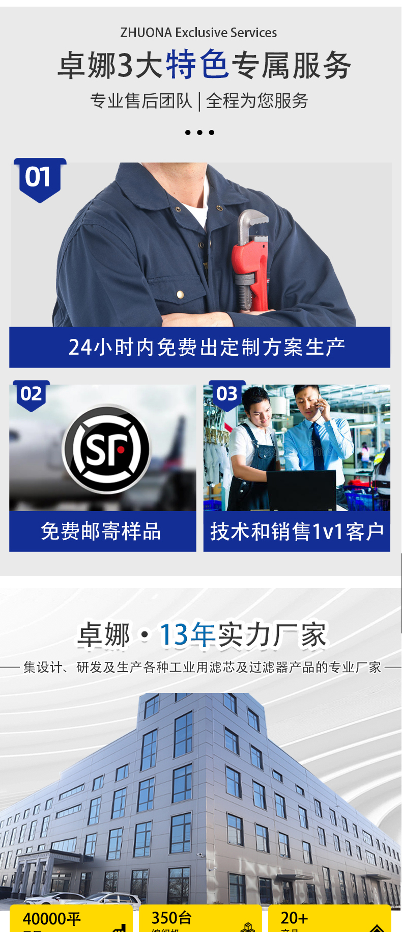 安平县卓娜丝网制品有限公司是一家集设计、研发及生产各种工业用滤芯及过滤器产品的专业厂家。主要产品包括烧结网、烧结毡、折波网滤芯、烧结网滤芯、楔形网滤芯、薄盘滤芯、前置过滤器滤芯,滤筒、包边滤片等深加工产品。