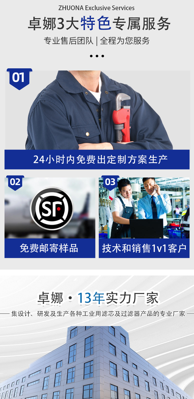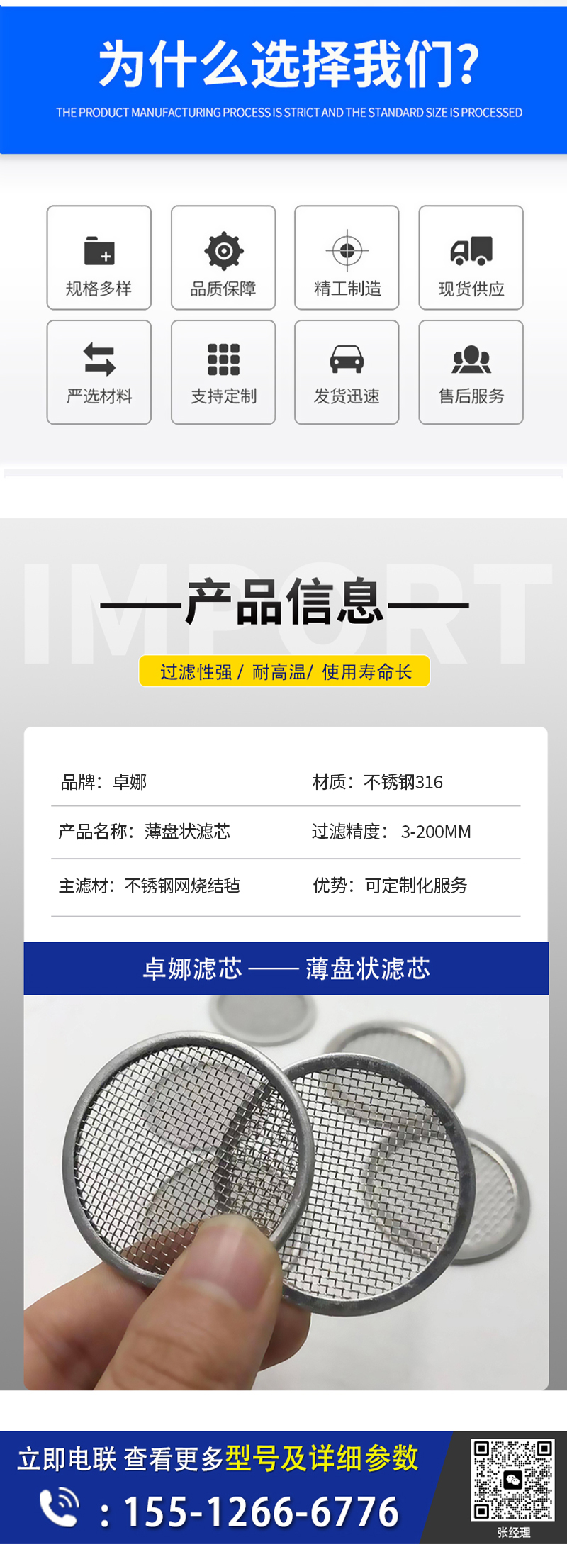 安平县卓娜丝网制品有限公司是一家集设计、研发及生产各种工业用滤芯及过滤器产品的专业厂家。主要产品包括烧结网、烧结毡、折波网滤芯、烧结网滤芯、楔形网滤芯、薄盘滤芯、前置过滤器滤芯,滤筒、包边滤片等深加工产品。
